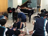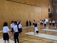 1年生の音楽の授業です。音楽では、どの学年も歌う前に体ほぐしのウォーミングアップを楽しそうに行っています。