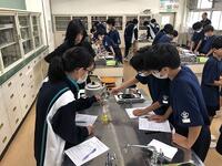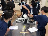 1年生の家庭科では、「加工食品にについて知ろう」というめあてで、グミに含まれる着色料を抽出する実験を行っていました。