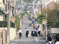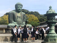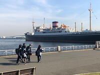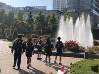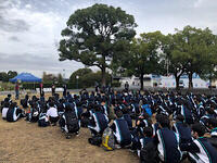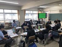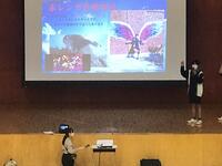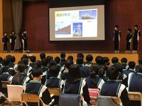 1学年が体育館で横浜校外学習の振り返りを行っていました。各グループがパワーポイントでまとめたものをクラスで発表し、クラスで選ばれたグループが全学年の前で発表しました。