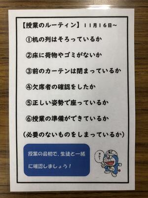 授業開始前の確認事項です。自然に行動できるよう全員で取り組んでいければと考えます。