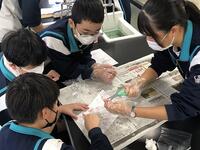 骨と筋肉のつながりを観察し、人の腕の構造を学びます。