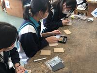 3年生の技術では、キーホルダーづくりが行われています。自ら型を作り、低融合金を流し固めます。