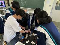 電流の直列・並列の回路図を考え→実際に組み立て→タブレットで撮影→データーを先生に提出
