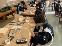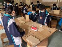 1年生の技術科の木工の授業では「本立て」を作っています。