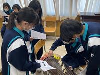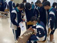 1年生の音楽の授業です。お琴の体験をしています。慣れない手つきで協力しながら「さくらさくら」に挑戦中です!