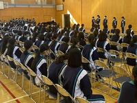 昨日公立入学者選抜が終了し、今日は球技大会です。残念ながら雨天でグランドでの競技はできませんでしたが、体育館で学年全員が集まり、フットサルや男女混合ドッチボールを行い盛り上がりました。