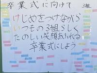 3年生の廊下には、卒業式に向けた一人一人の思いがクラスごとにまとめられ掲示されています。皆それぞれの思いで自分たちの卒業式を良いものにしようと取り組んでいます。