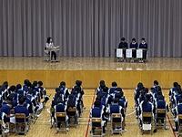 第1学年は、3名の卒業生を招き進路(進学)についてお話を聞きました。「進学先決定の理由」や「何校くらい見学したのか」等、インタビュー形式で進みました。