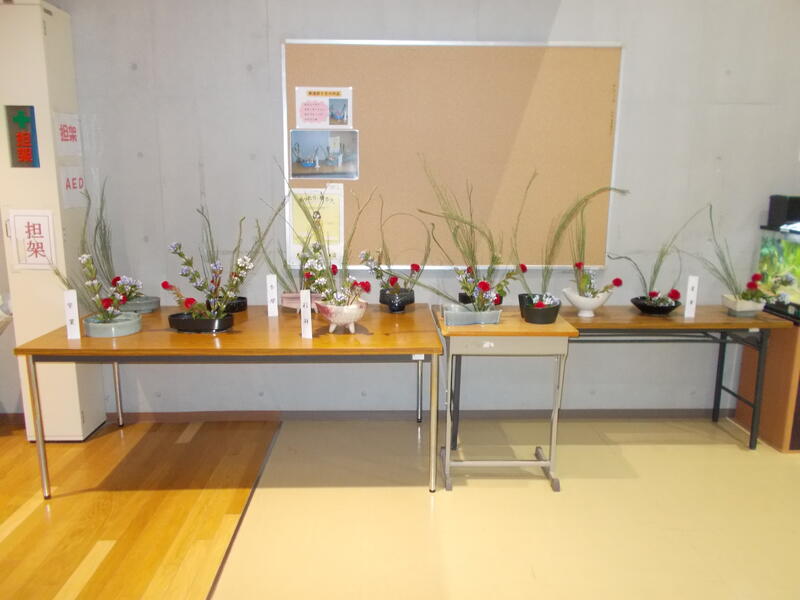 秋らしく、ケイトウ、リンドウ、エニシダの作品です。