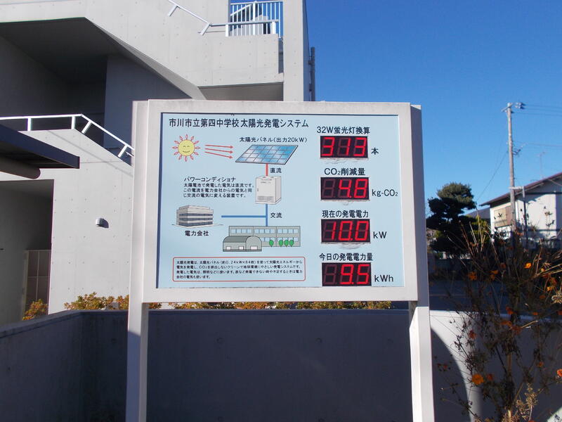 冬晴れの日が続いています。四中の1棟の屋上には太陽光発電パネルがあります。