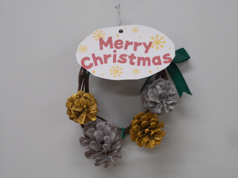 大空学級でクリスマスリースを作成したので、校長室にも飾りました。