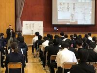 2年生は、市川被爆者の会副会長の井上様にお越しいただき、長崎でのご自身の被爆体験を伺いました。ご高齢にもかかわらず、未来の子供たちのためにと熱い思いを語っていただきました。