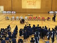 第1学年は、陸上競技でパラリンピック7大会出場のパラリンピアン永尾さんをお招きし、車いすスピードチャレンジや車いすリレーを体験した後、挑戦することの大切さについてお話を伺いました。
