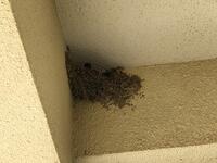 昼休み、校庭を歩いていると「先生!ツバメの巣、ツバメの巣!」と声を掛けられました。行ってみると3つの巣があり、一つの巣からは、ツバメが覗いていました。
