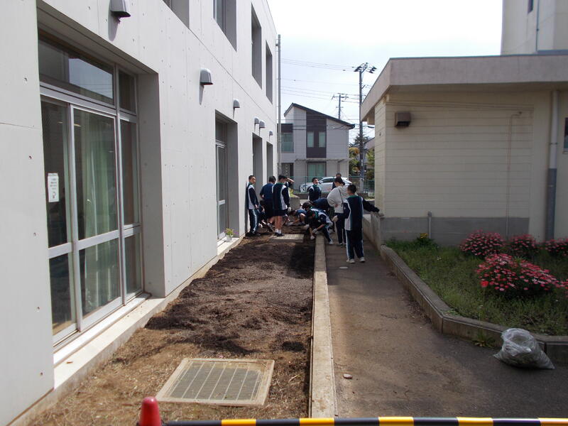 大空学級では、土や肥料を運び、花壇整備を行いました。