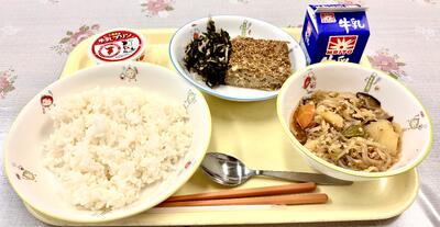 いなだの照り焼き 大根サラダ ごはん 白玉しるこ 牛乳