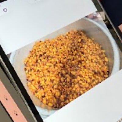 ベーコン、キャベツ、赤ピーマン、青ピーマン、コーンなど彩り豊かな炒めもの