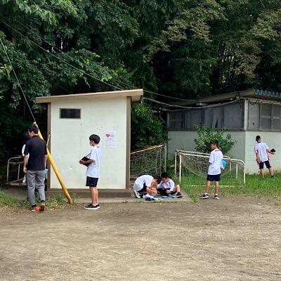今回はグラウンド周りのジャマな枝や草を取り除いています