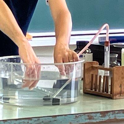グラウンド側溝内の泥除去のための準備作業が進みました