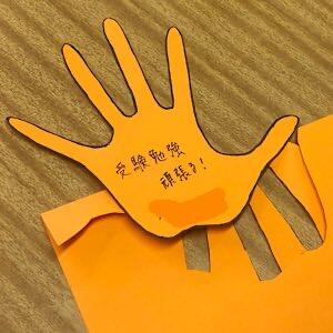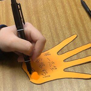 新学年の抱負を手形に書いて掲示します