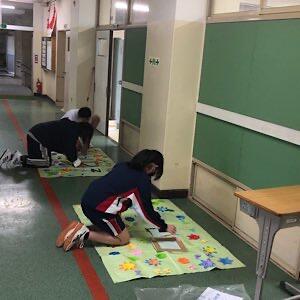 明日の会場設営と新入生教室の装飾をしています
