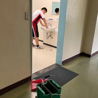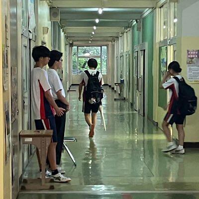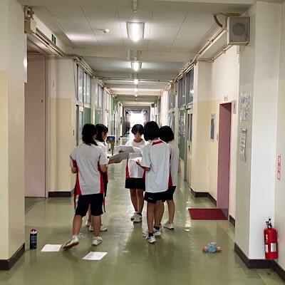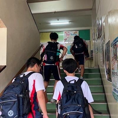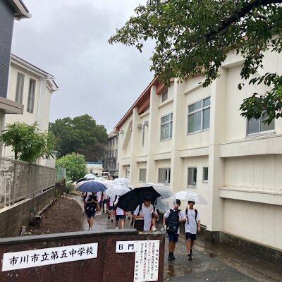 台風がもたらす大雨の影響を避け、下校時刻を14:00に早めました
