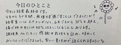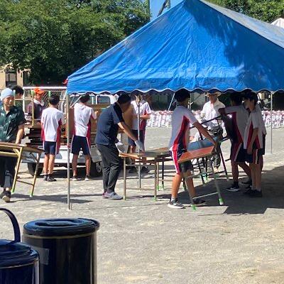 暑さ対策のための厚生労働省労働安全衛生規則改正に伴い、9月第2週まで、給食に使う食器の数を減らして対応いたします