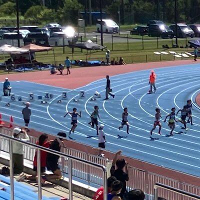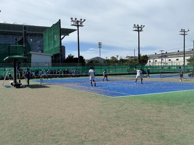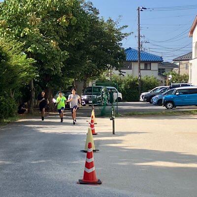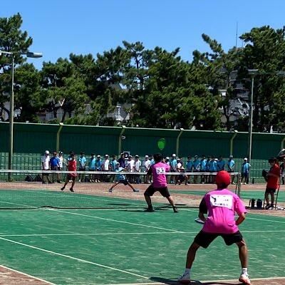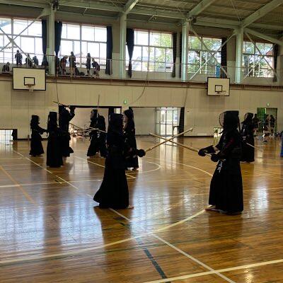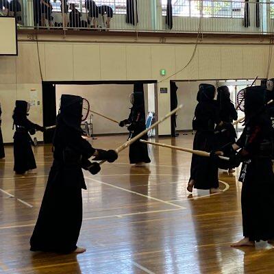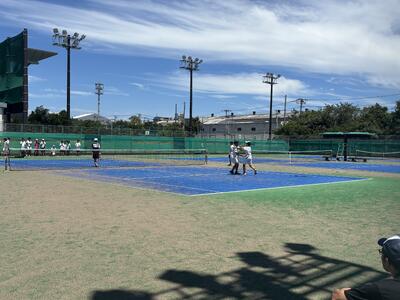 男子団体一回戦 五中の目白(背中タスキ)は赤、相手は七中(背中タスキ白)