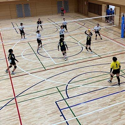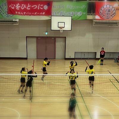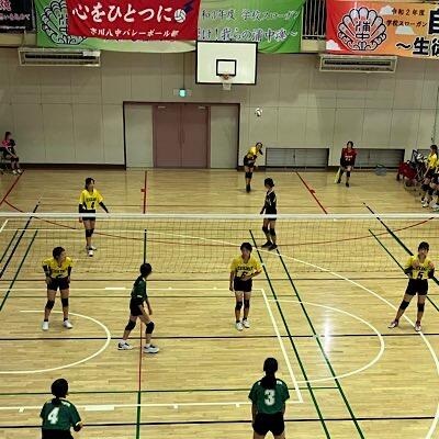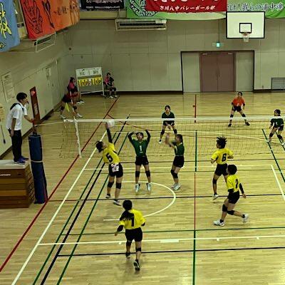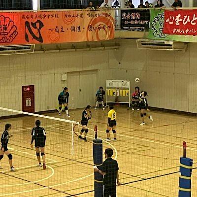 先取点は五中、二中の強いサーブにレシーブが乱れ、点差を離される