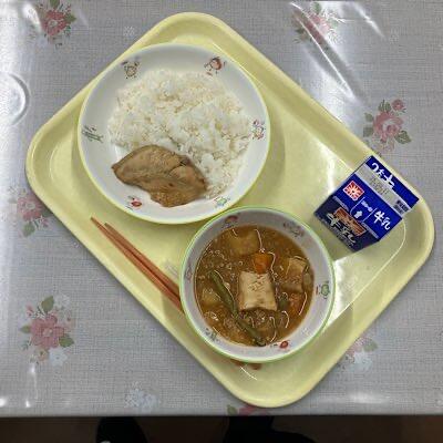 さばの塩こうじ焼き ごはん 生揚げの肉味噌煮 牛乳