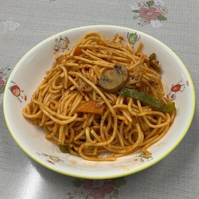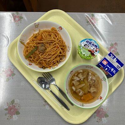 スパゲティナポリタン 野菜スープ ヨーグルト 牛乳