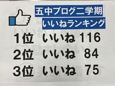 お祝い五中ブログ『いいね!』二学期ランキング発表