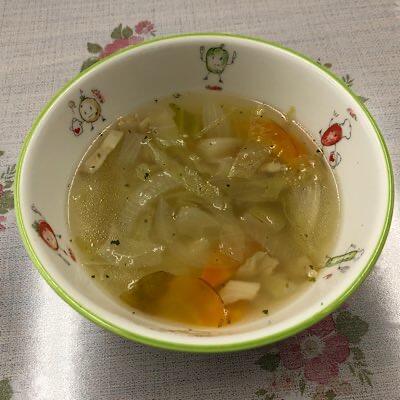 コーンフレーク揚げ ごまサラダ コンソメスープ お月見団子 牛乳