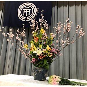 男子バスケ部が入学式保護者席に使ったイスを片付けています