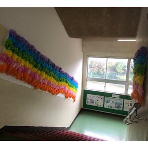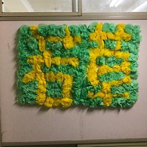 明日の会場設営と新入生教室の装飾をしています