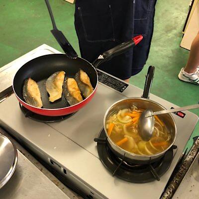野菜スープは豚肉入り、畑の幸、山の幸、海の幸が、調和
