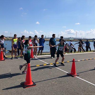 3区走者が、4位下貝塚中を猛追して、4区へつながりました