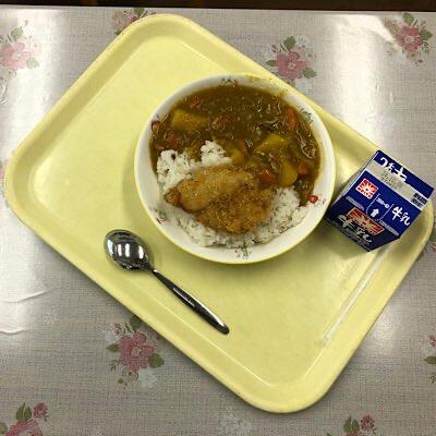 白身魚フライ ポークカレー 麦ごはん 牛乳