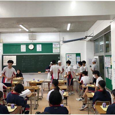 宿泊行動のトレーニングをして、明日の給食に戻ります