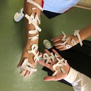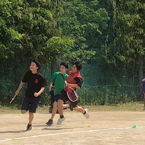 学級対抗リレーを練習しています