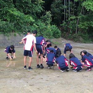 放課後 部活対抗リレーのリハーサルをしています