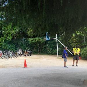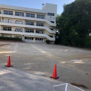 参観者駐輪場は、校舎前テニスコートです