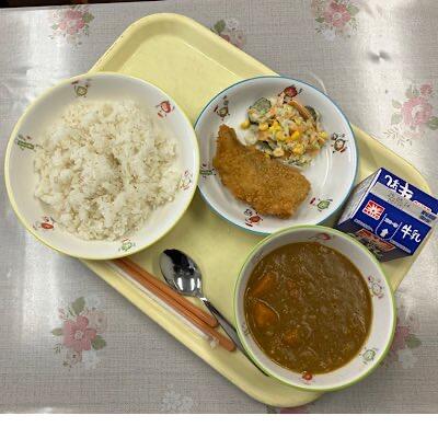 今日の献立は、ごはん、春巻き、中華和え、中華スープ、牛乳です。