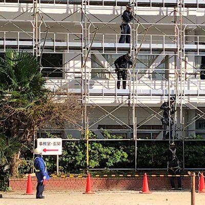 用務員さんを中心に、保護者参観エリアの草刈を終えました