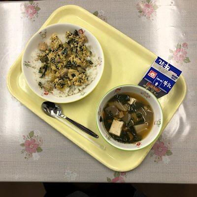 擬製豆腐 青菜の炒め煮 じゃがいものそぼろ煮 ゆかりごはん 牛乳