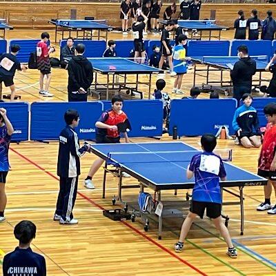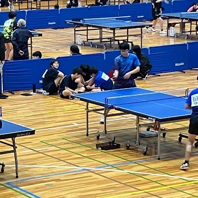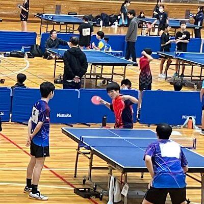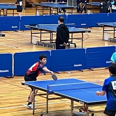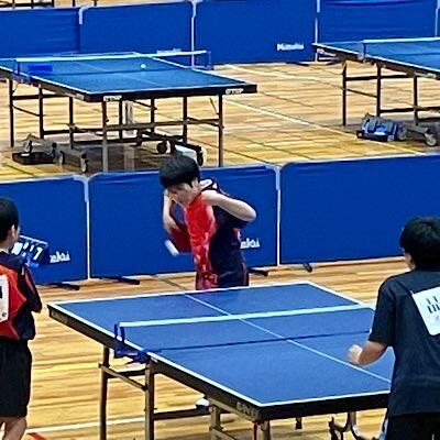 シングルスA 相手のカットサーブに苦しむがバックショート、フォアハンドスマッシュで反撃