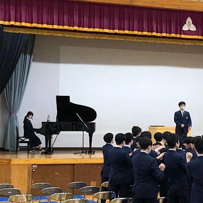 音楽校歌発声練習中