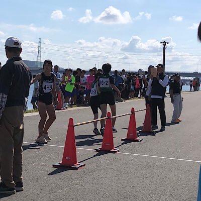 3区走者が、4位下貝塚中を猛追して、4区へつながりました