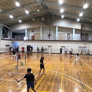 バドミントン部、吹奏楽部、合唱部が練習しています