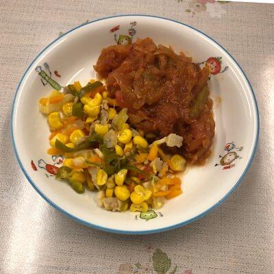 メキシカンライス ピーマンの肉詰め レタスとベーコンのスープ 市川のなしゼリー 牛乳